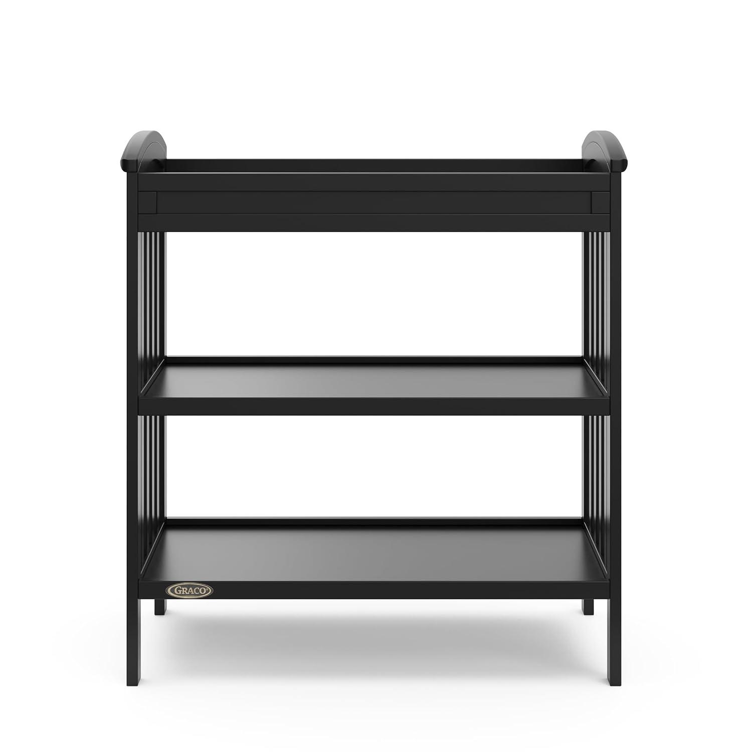 Graco Benton Changing Table with Bonus Water-Resistant Changing Pad (White) – GREENGUARD Gold Certified, Includes Diaper Change Pad with Safety Strap, 2 Open Storage Shelves for Organizing(Black)