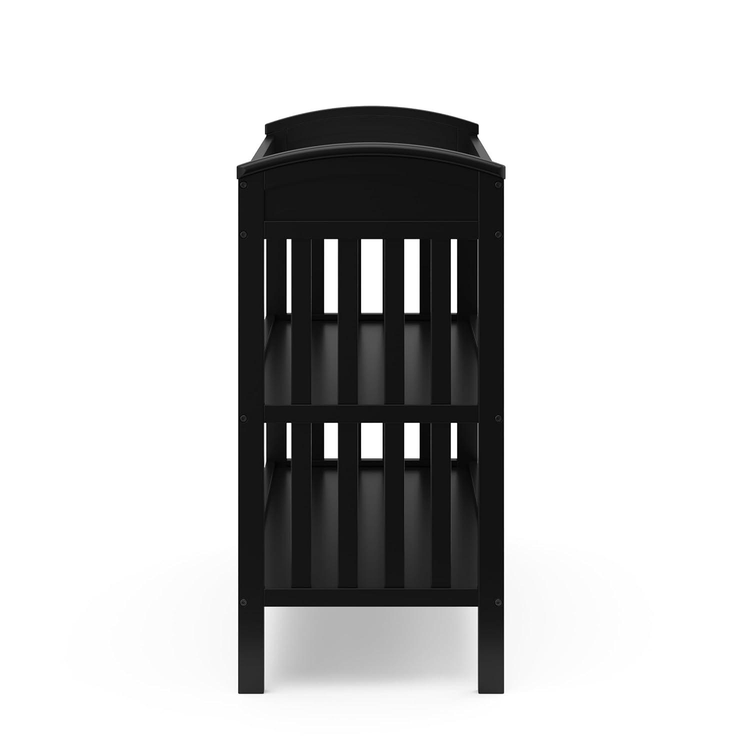 Graco Benton Changing Table with Bonus Water-Resistant Changing Pad (White) - GREENGUARD Gold Certified, Includes Diaper Change Pad with Safety Strap, 2 Open Storage Shelves for Organizing(Black)