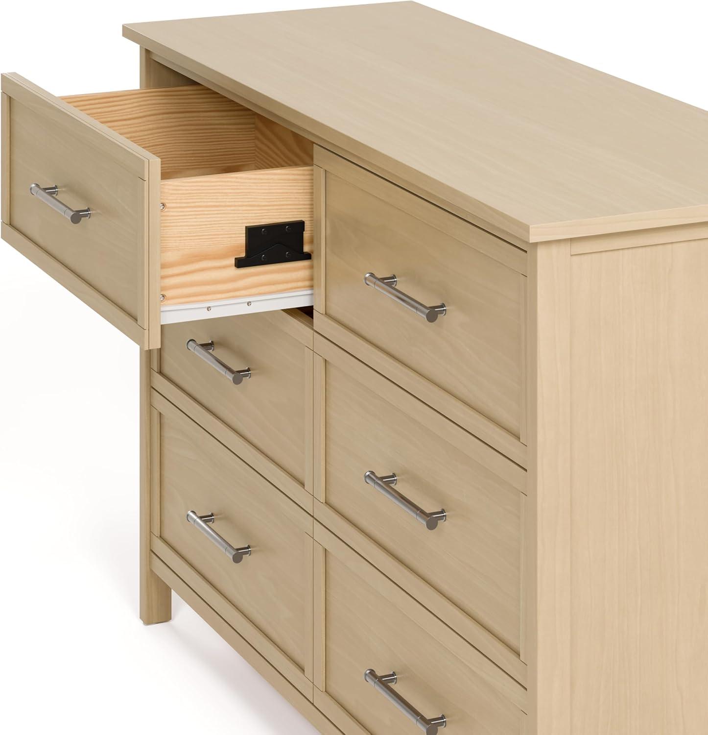 Introducing the classic, timeless, and easy-to-match Graco Classic 6 Drawer Double Dresser — a convenient baby and kids chest of drawers that’s versatile enough to match with any style of nursery or bedroom, and is highlighted by its premium, elegant metal hardware. Designed and engineered with safety top of mind, the Classic includes Graco's innovative, safety-focused interlocking drawer system — meaning only one drawer can open at a time. This interlocking drawer system is designed to mitigate furniture tip-over risk, when used in tandem with the included furniture anti-tip kit. The Classic is GREENGUARD Gold Certified, is crafted from wood and wood composites, and its applied finish has been tested to meet or exceed the applicable ASTM and CPSIA safety standards. The Classic is expert tested by third-party, accredited laboratories to meet or exceed all of the applicable category voluntary and mandatory safety standards. Designed to adapt to your growing baby, the Classic offers six spacious drawers, making it useful from the nursery all the way to kids bedroom. Part of the versatile Graco Classic Collection, the Graco Classic 6 Drawer Double Dresser is designed to match perfectly with the Graco Classic 3 Drawer Chest with Removable Changing Topper, and also with our wide assortment of Graco nursery and toddler furniture — from cribs and toddler beds, to nursery chairs and changing tables. The Graco Classic 6 Drawer Double Dresser is exclusively manufactured by Storkcraft — proud licensee of the Graco brand within nursery and kids bedroom furniture. The Classic is backed by Storkcraft’s supportive, real-life Customer Care team and 1-year limited manufacturer’s warranty. Assembly required (two people recommended for assembly).