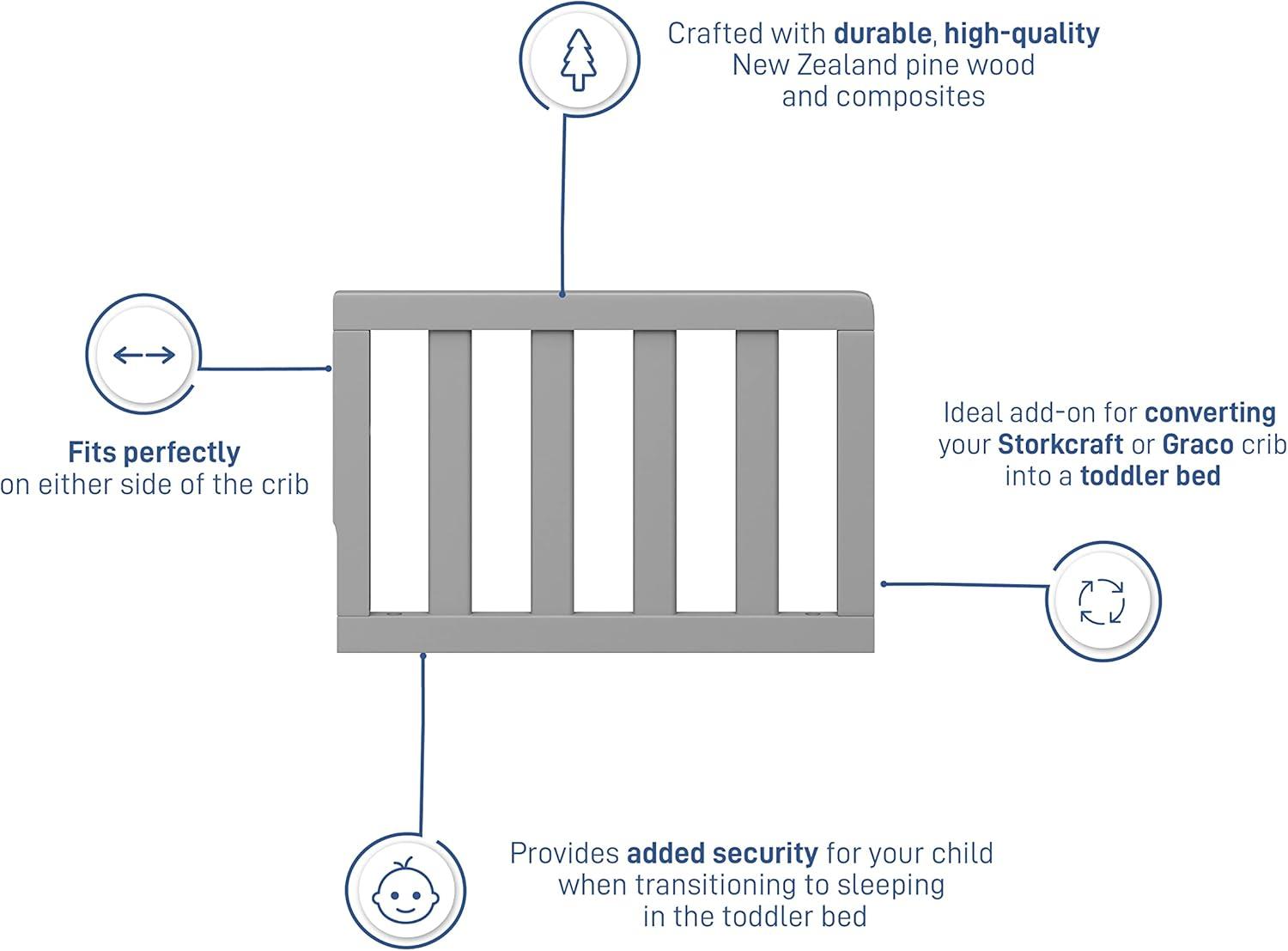 Graco Storkcraft Toddler Safety Guardrail with Slats (White) – GREENGUARD Gold Certified, Converts Compatible Storkcraft Crib to Toddler Bed, Each Guardrail Sold Individually(Pebble Gray)